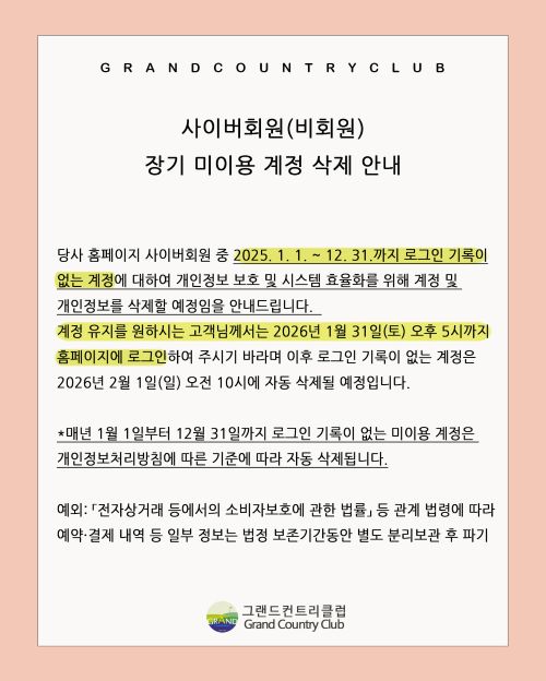 사이버회원(비회원) 장기 미이용 계정 삭제 안내